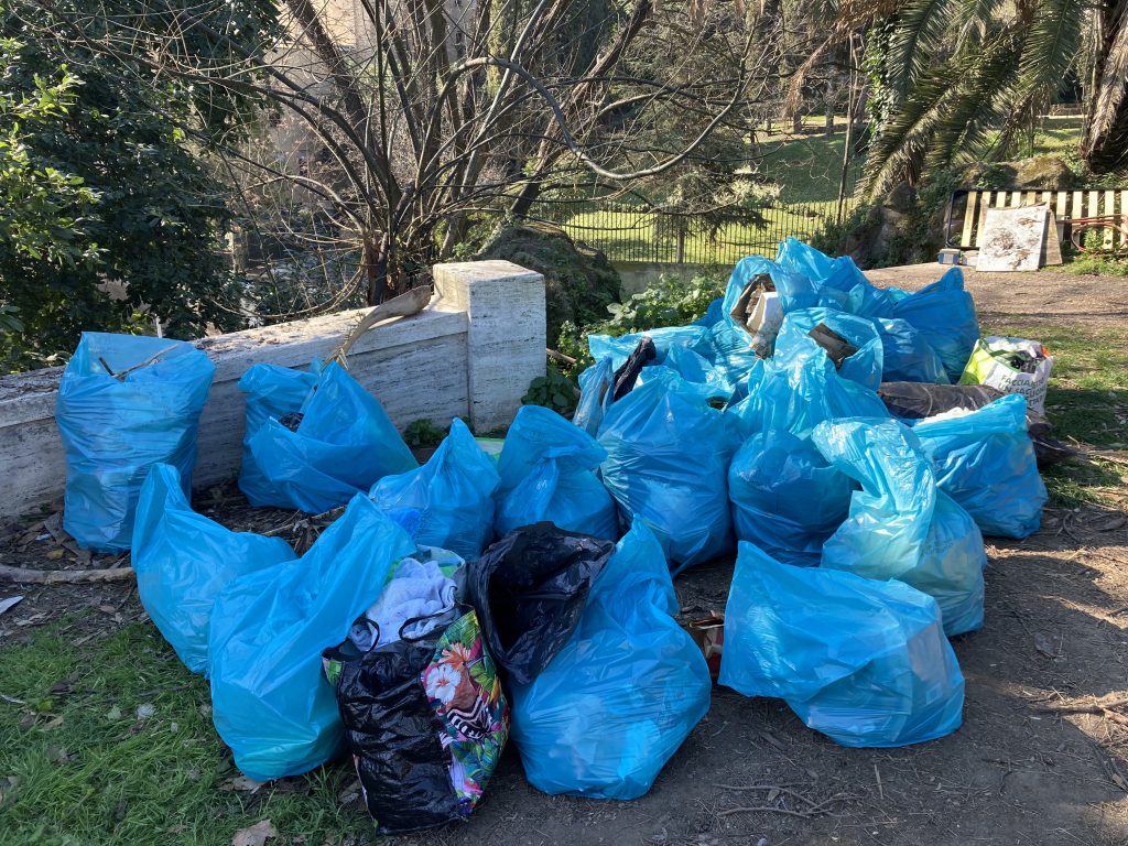 Con la collaborazione degli studenti del vicino Liceo J. F. Kennedy siamo riusciti a bonificarla. Ci sono voluti due giorni per raccogliere PIU’ 60 DI SACCHI DI IMMONDIZIA, la rete di un letto, una sedia, un passeggino rotto, batterie auto, vestiario ammuffito, bottiglie,… una vera indicenza accumulata da anni!!!