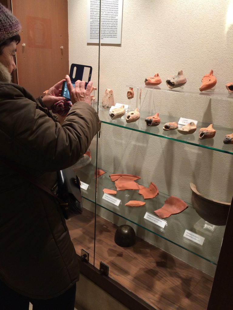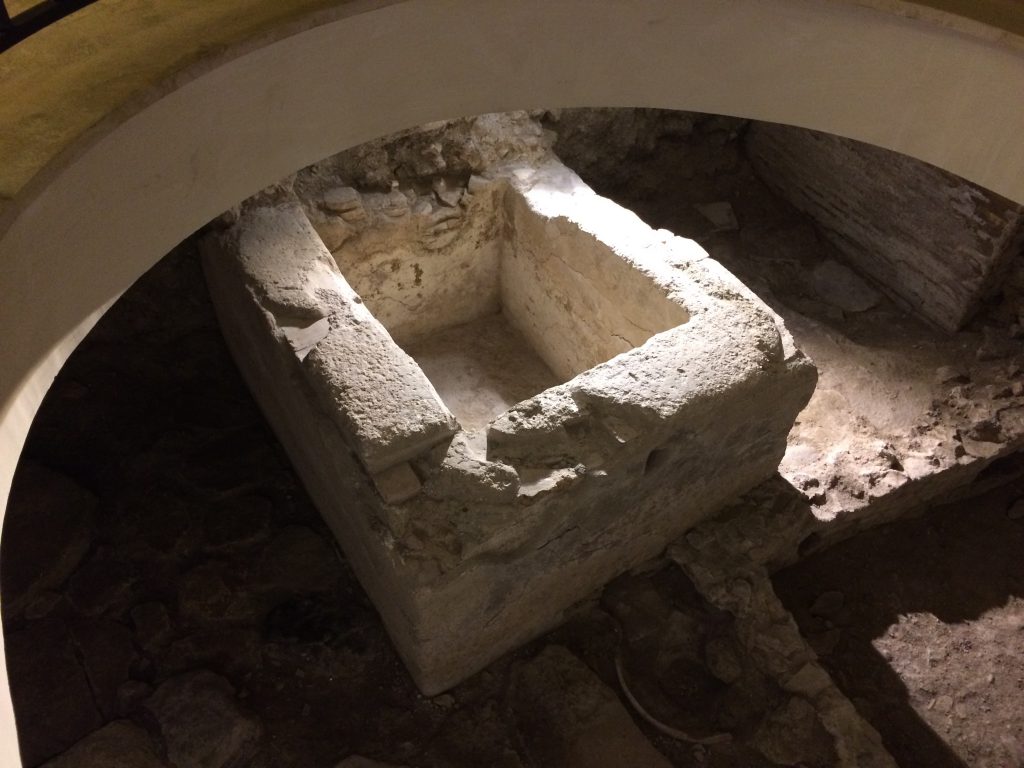 - resti di antiche strade romane che dividono, tramite cortili, corpose strutture civili di abitazione: dimore che occuparono l’area dell’isolato subendo alcune trasformazioni, dalla seconda metà del II sec. d. C. alla prima metà del IV sec. d.C.
